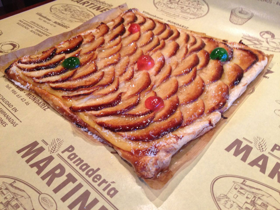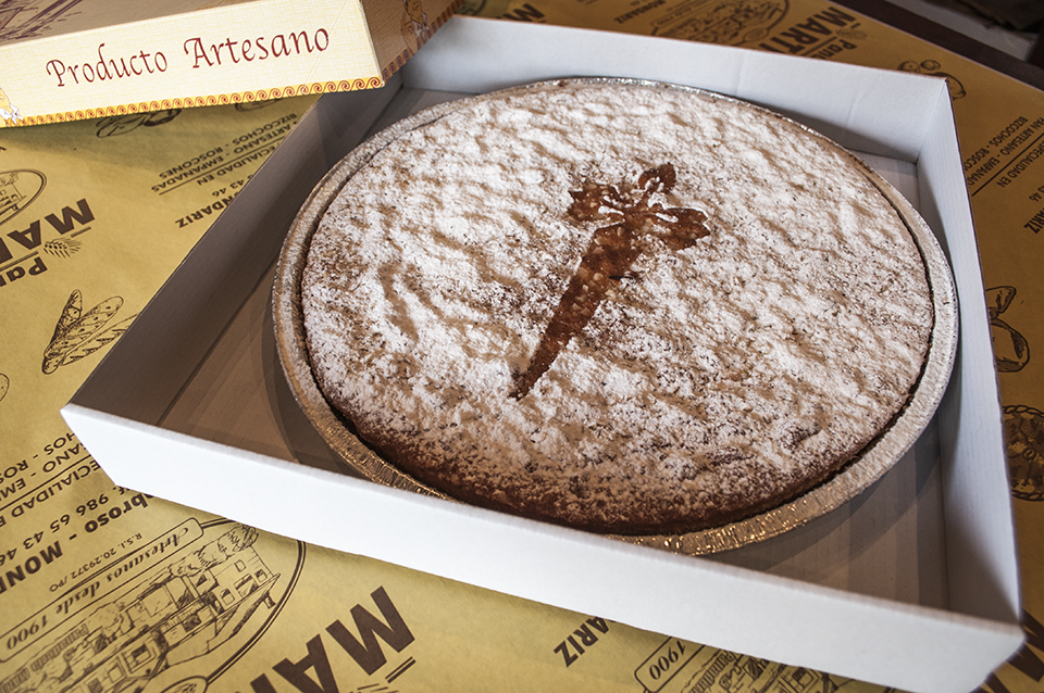 La Tarta de Santiago es una receta tradicional de la cocina gallega de la que se desconoce su origen, puesto que es prácticamente igual a la Tarta de Elche, de la que se distingue por no llevar nada de harina. Actualmente se pueden comprar en casi todas las pastelerías de las poblaciones y zonas por las que pasa el Camino de Santiago, desde Roncesvalles o Jaca hasta Santiago de Compostela; y en toda la Comunidad Autónoma de Galicia, especialmente durante el mes de julio y la primera semana de agosto (debido a que el 25 de julio es Santiago Apóstol). Sus principales ingredientes son almendras, azúcar y huevos.